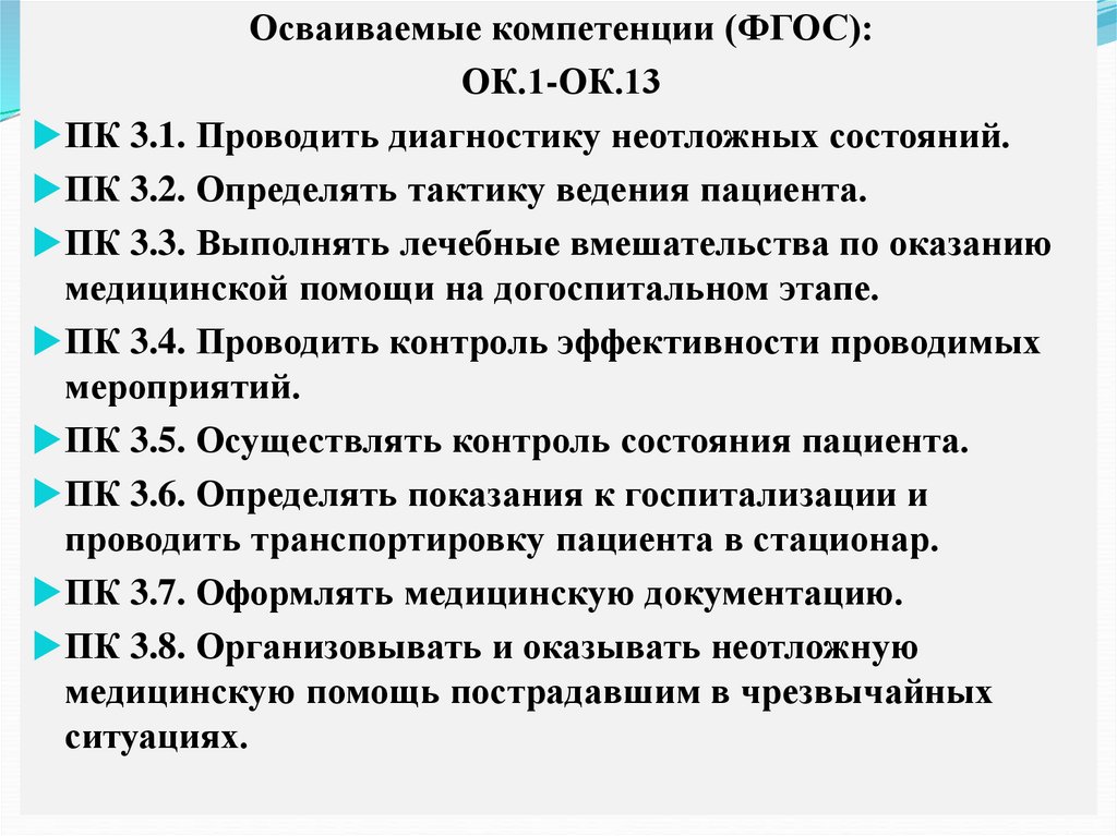 ПК 3.1. Проводить диагностику неотложных состояний.