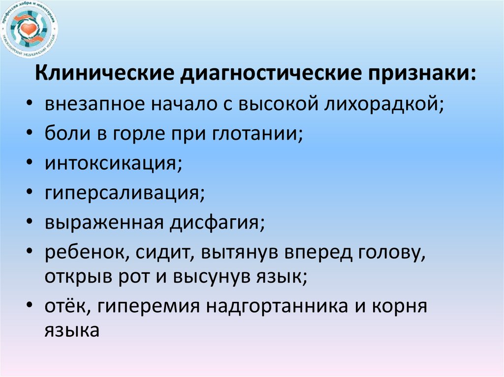 • Характерная триада симптомов осиплый голос, грубый, лающий