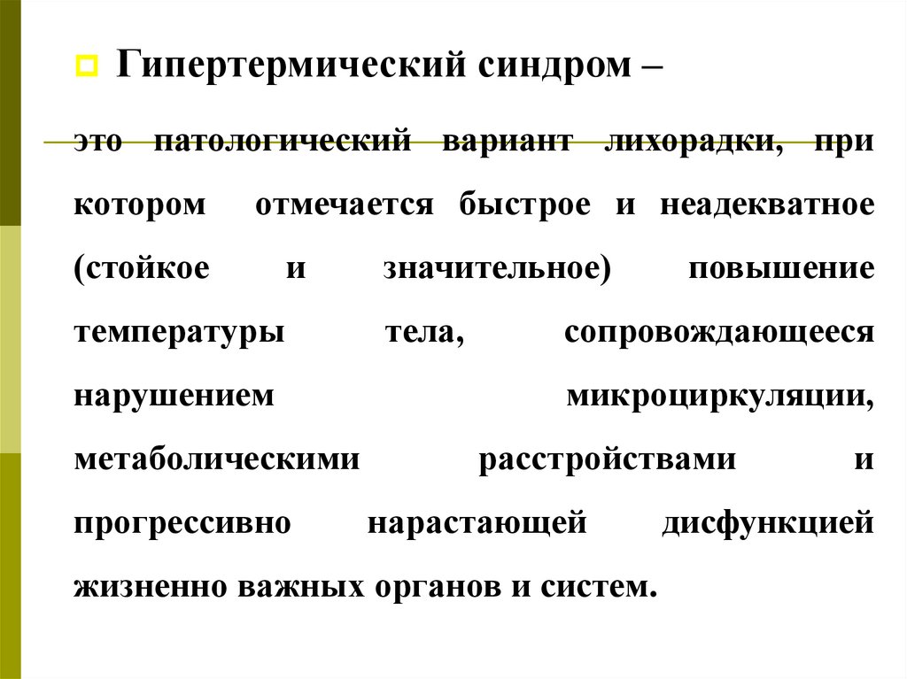 Гипертермический синдром –это патологический вариант лихорадки, при