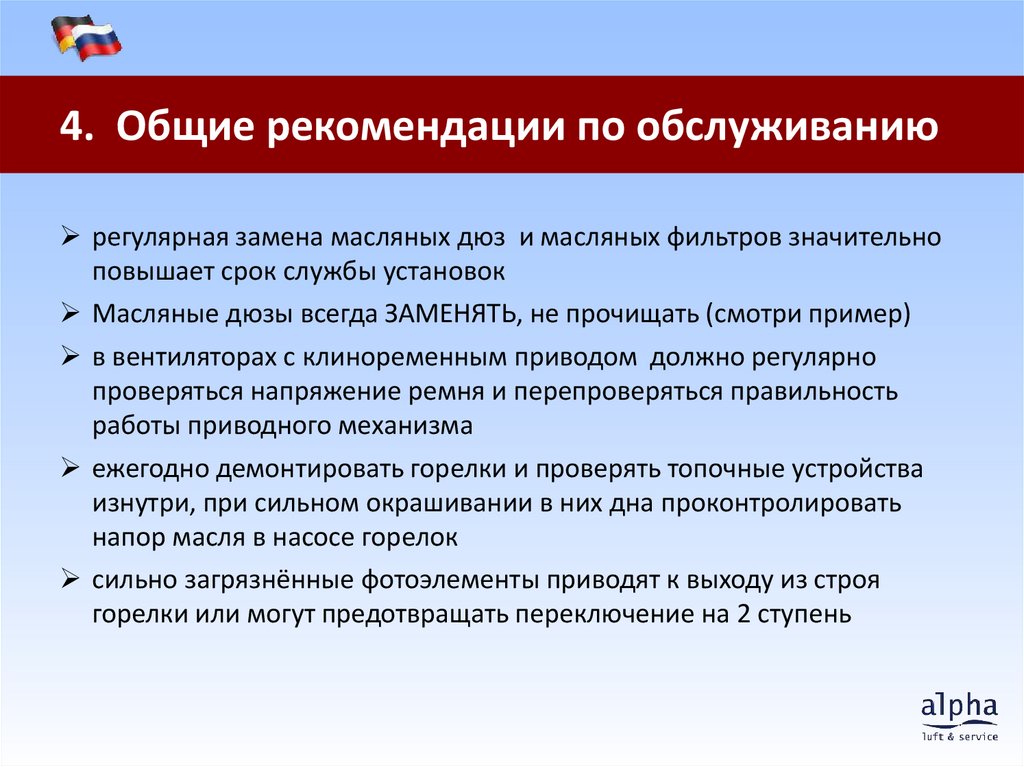 4. Oбщие рекомендации по обслуживаниюрегулярная замена масляных дюз и масляных фильтров значительно