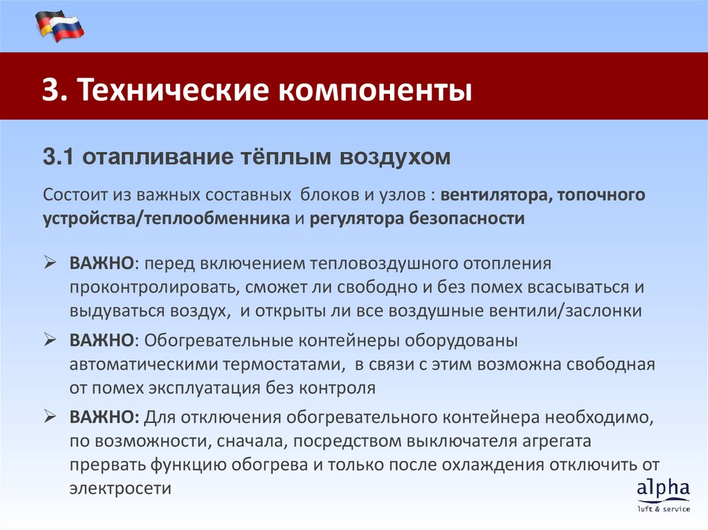 3. Технические компоненты3.1 отапливание тёплым воздухом
