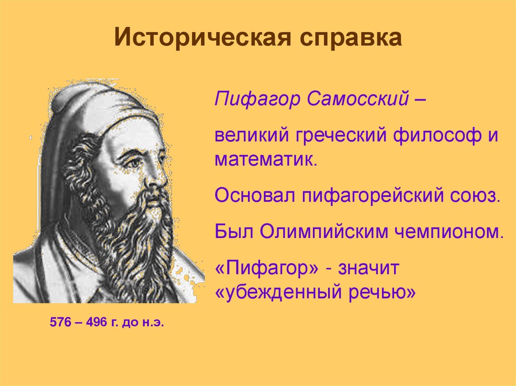 Историческая справкаПифагор Самосский –