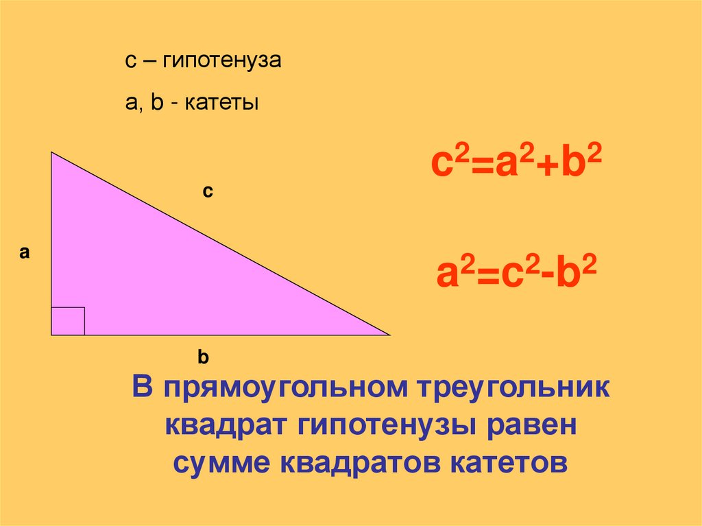 c – гипотенузаа, b - катеты