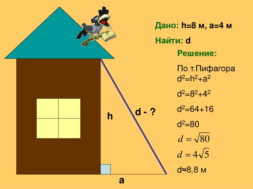 Дано: h=8 м, a=4 мНайти: d