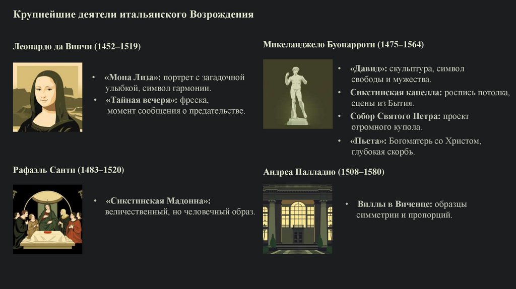 Крупнейшие деятели итальянского ВозрожденияЛеонардо да Винчи (1452–1519)