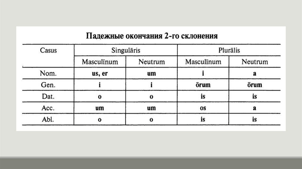 большинстве из них при склонении выпадает -е•magister, m – magistri (учитель)