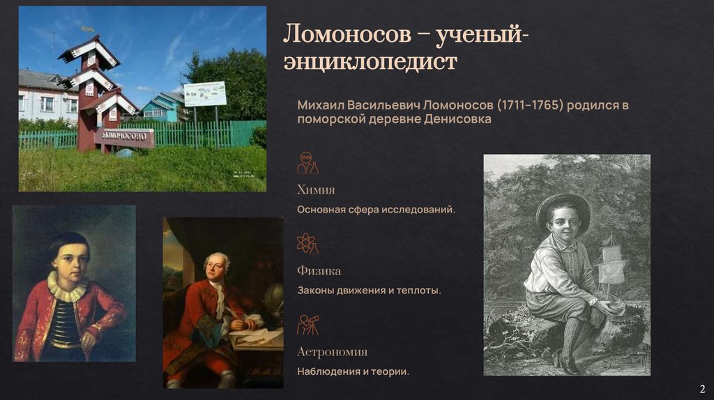 Ломоносов – ученыйэнциклопедистМихаил Васильевич Ломоносов (1711–1765) родился в