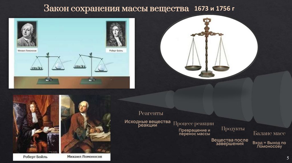 Закон сохранения массы вещества 1673 и 1756 гРеагенты