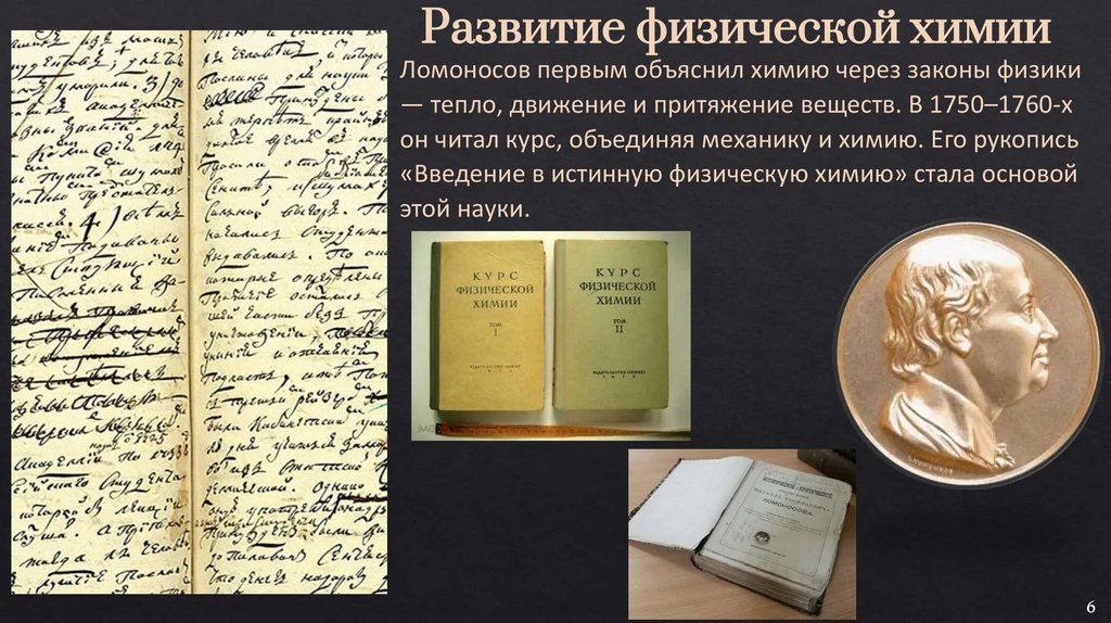 Развитие физической химииЛомоносов первым объяснил химию через законы физики