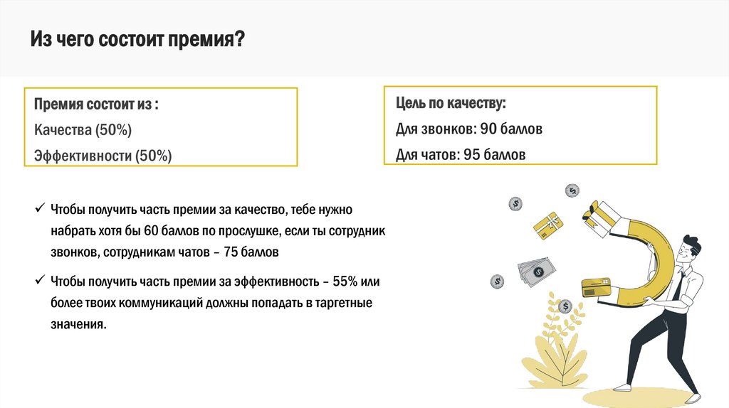 Чтобы получить часть премии за эффективность – 55% или