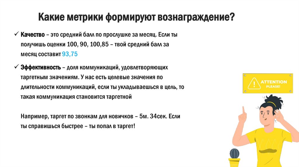 Какие метрики формируют вознаграждение?Качество – это средний балл по прослушке за месяц. Если ты