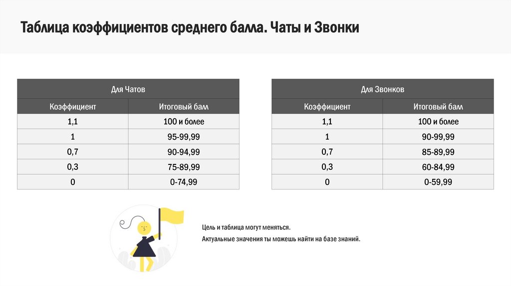 Таблица коэффициентов среднего балла. Чаты и ЗвонкиДля Чатов