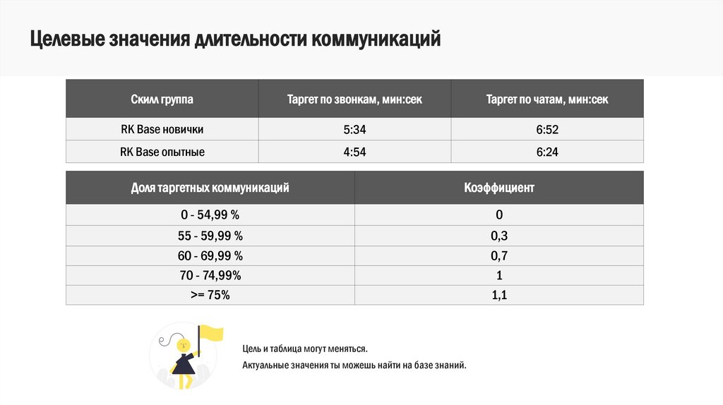 Целевые значения длительности коммуникацийСкилл группа