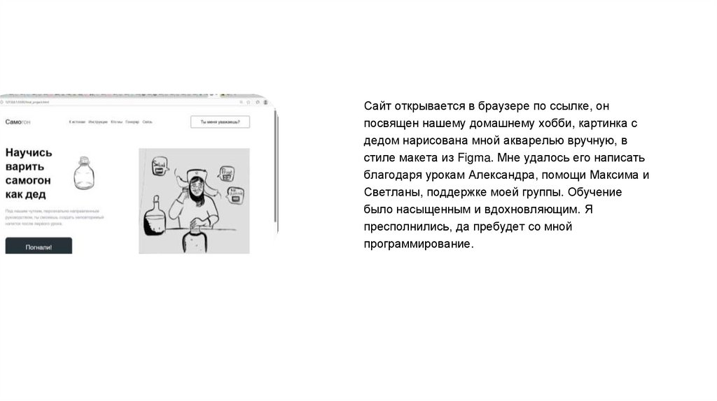 Сайт открывается в браузере по ссылке, онпосвящен нашему домашнему хобби, картинка с