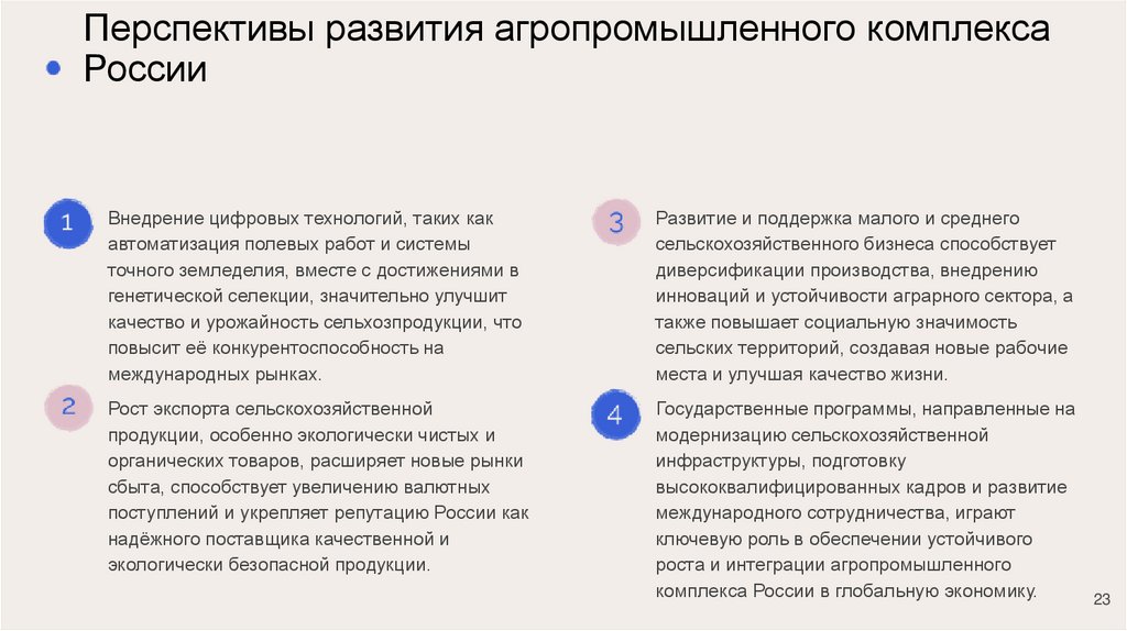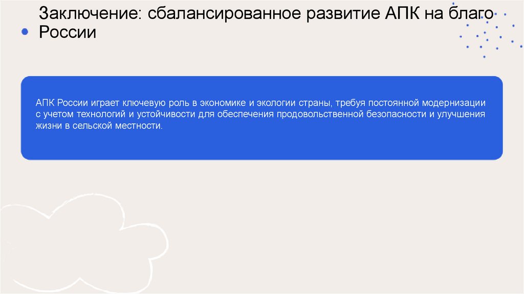 Заключение: сбалансированное развитие АПК на благоРоссии