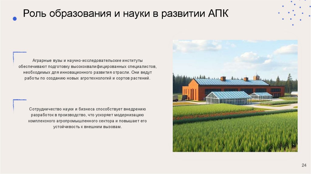 Роль образования и науки в развитии АПКАграрные вузы и научно-исследовательские институты