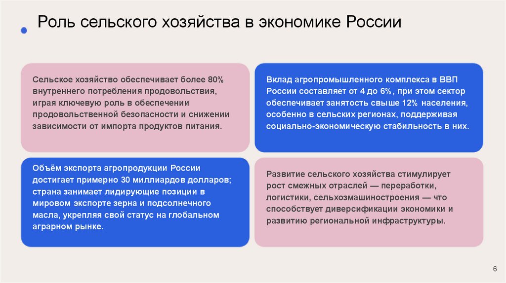 Роль сельского хозяйства в экономике РоссииСельское хозяйство обеспечивает более 80%