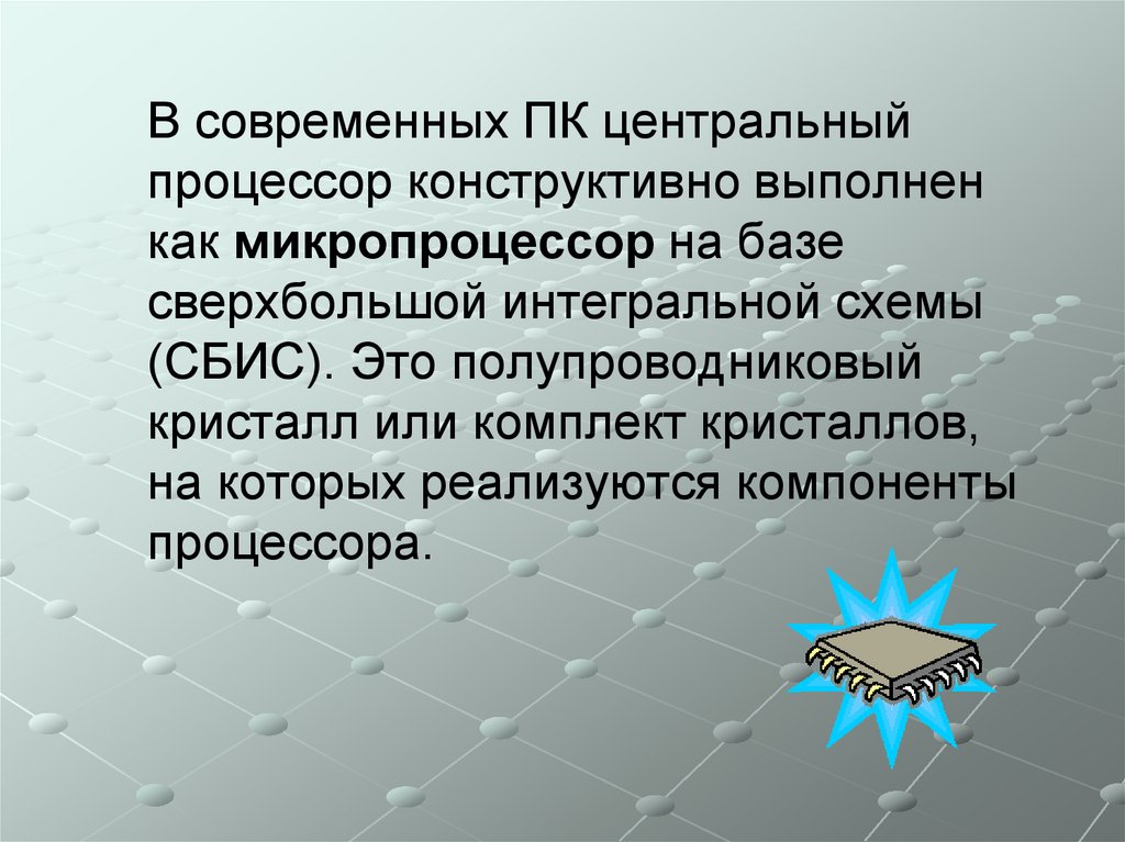 В современных ПК центральныйпроцессор конструктивно выполнен