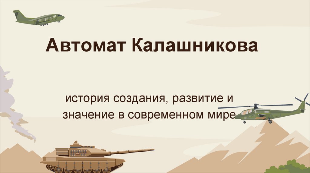 Автомат Калашникова — это автоматическое стрелковоеоружие, использующее промежуточный патрон и