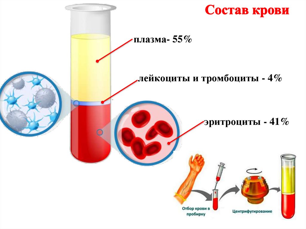 плазма- 55%лейкоциты и тромбоциты - 4%