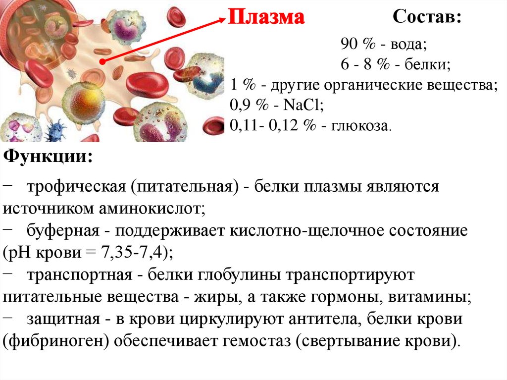 (фибриноген) обеспечивает гемостаз (свертывание крови).
