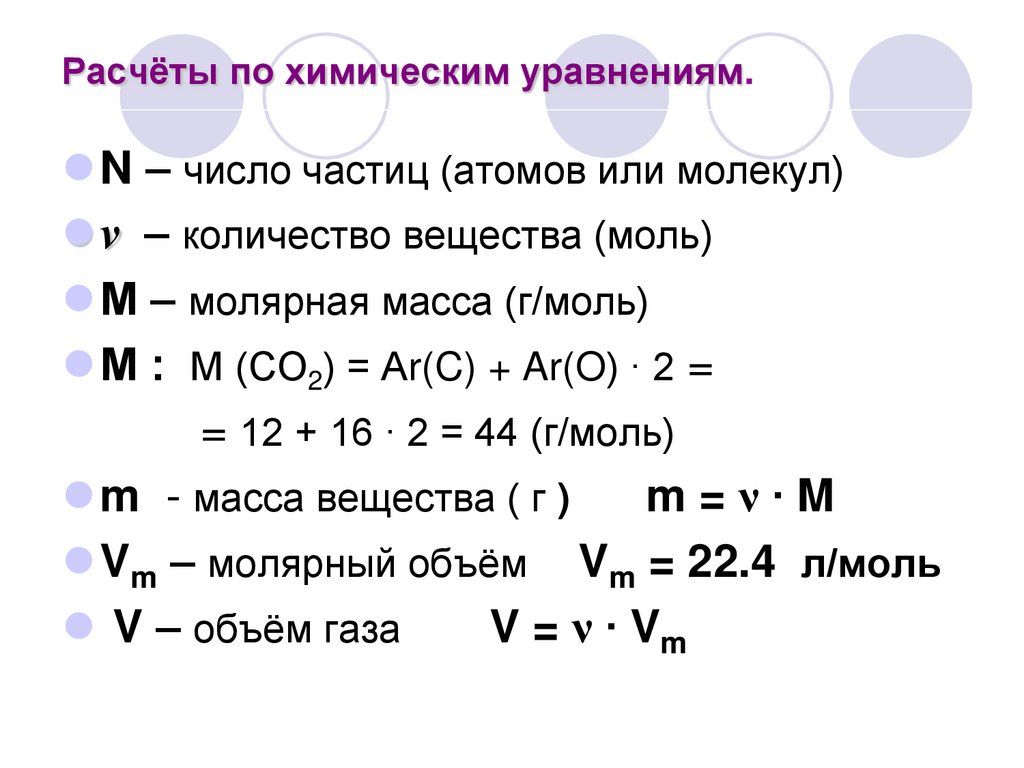 Расчёты по химическим уравнениям.N – число частиц (атомов или молекул)