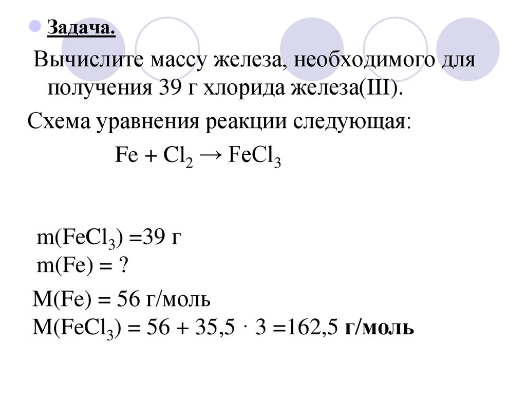 M(FeCl3) = 56 + 35,5 · 3 =162,5 г/моль