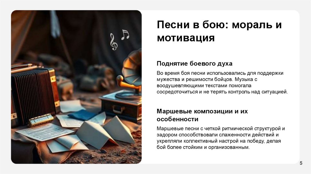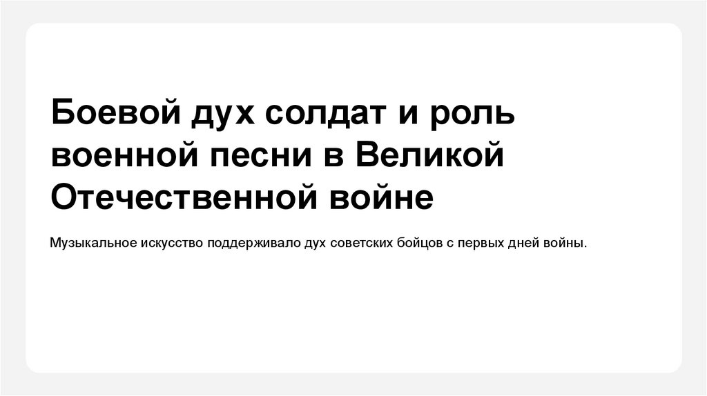 Боевой дух солдат и рольвоенной песни в Великой