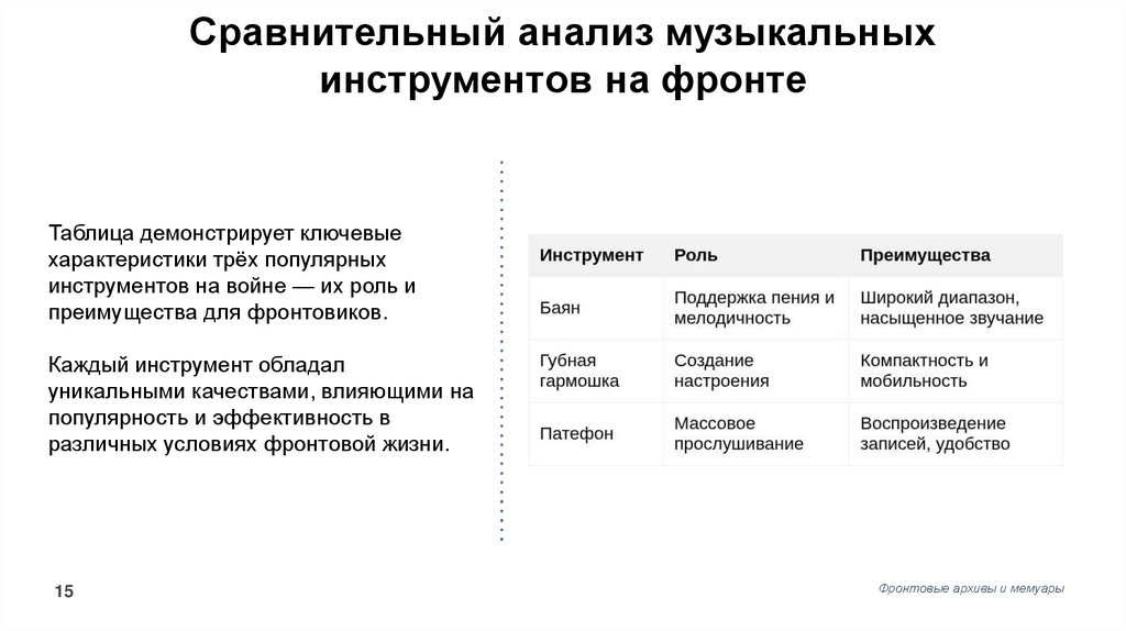 Сравнительный анализ музыкальныхинструментов на фронте