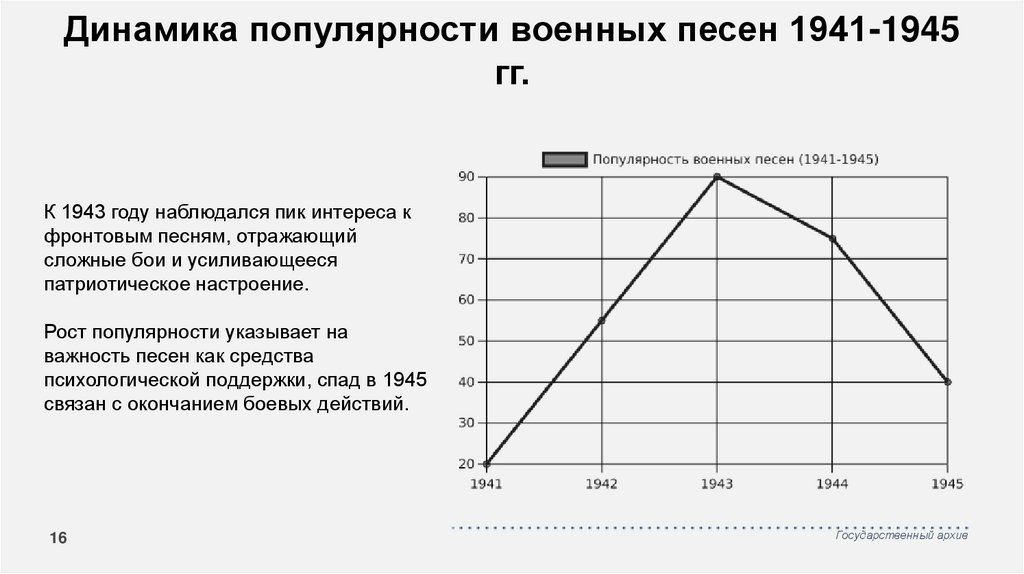 Динамика популярности военных песен 1941-1945гг.