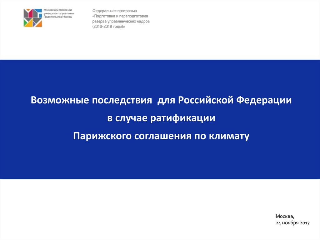 1. Возможные последствия для Российской Федерации в случае ратификации Парижского соглашения по климату