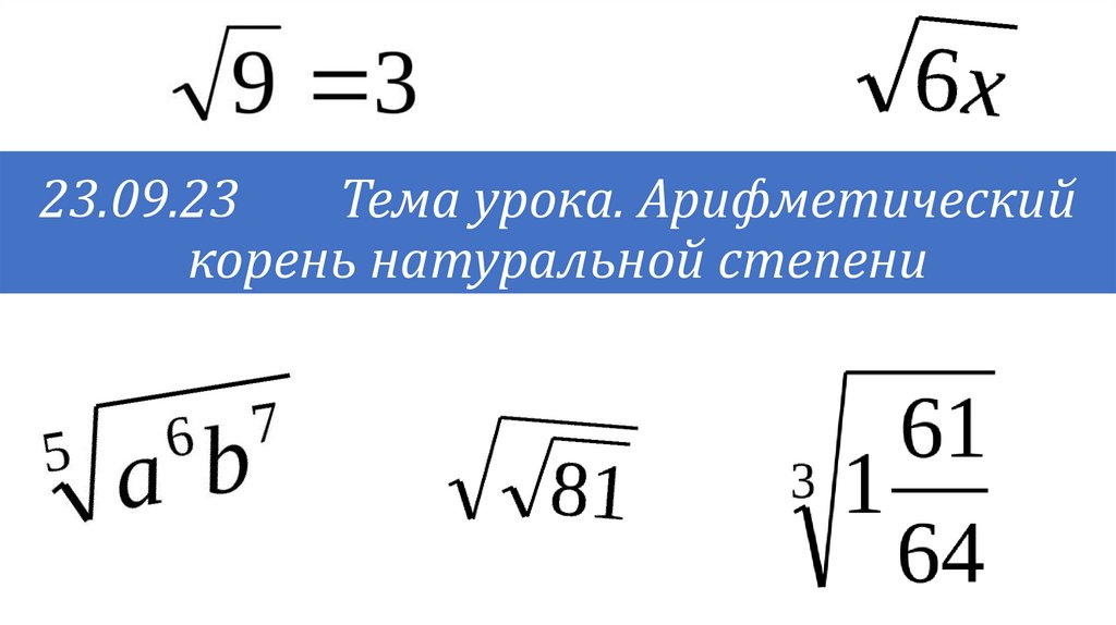 1. 23.09.23 Тема урока. Арифметический корень натуральной степени
