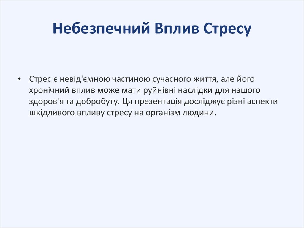 Небезпечний Вплив Стресу• Стрес є невід'ємною частиною сучасного життя, але його
