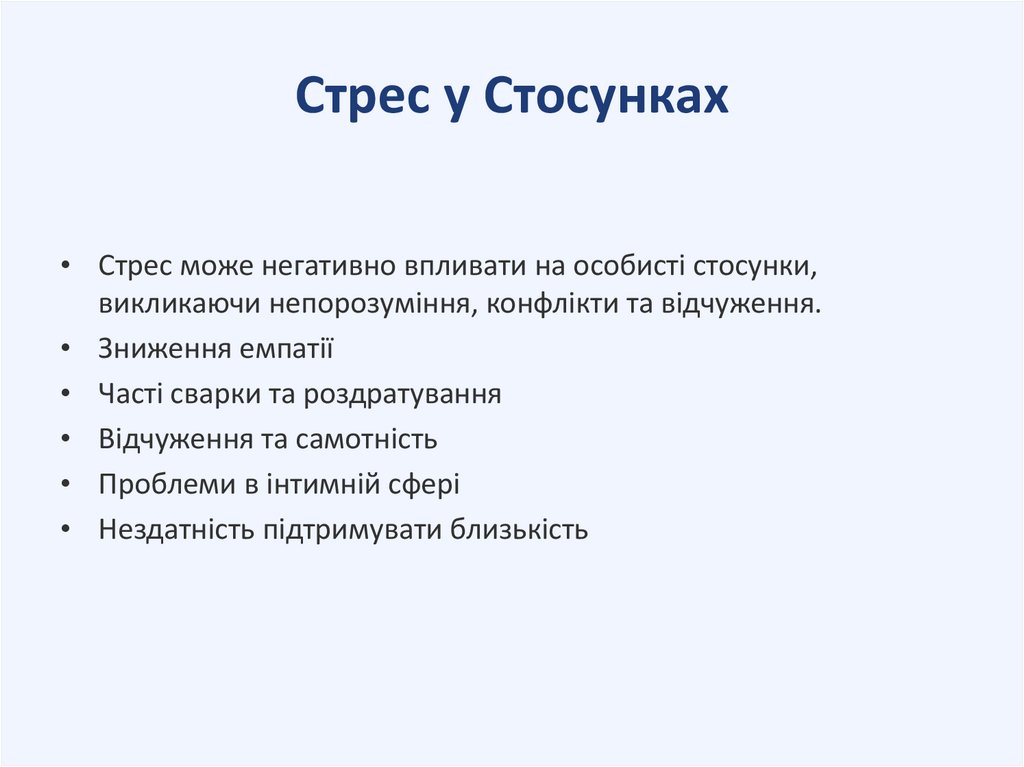 Стрес у Стосунках• Стрес може негативно впливати на особисті стосунки,