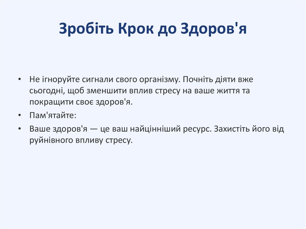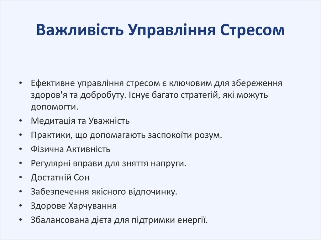 Важливість Управління Стресом• Ефективне управління стресом є ключовим для збереження