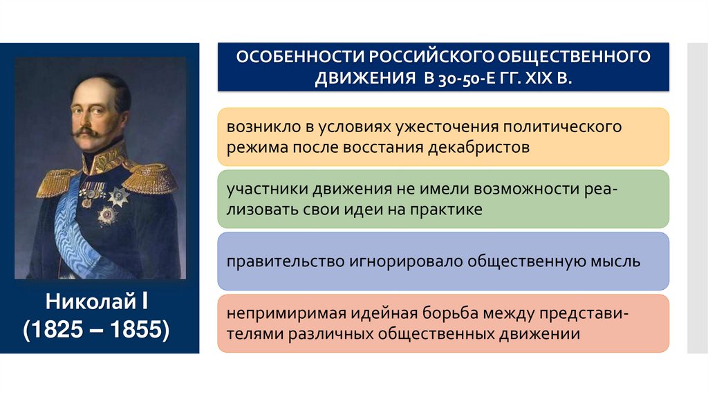 ОСОБЕННОСТИ РОССИЙСКОГО ОБЩЕСТВЕННОГОДВИЖЕНИЯ В 30-50-Е ГГ. ХІХ В.