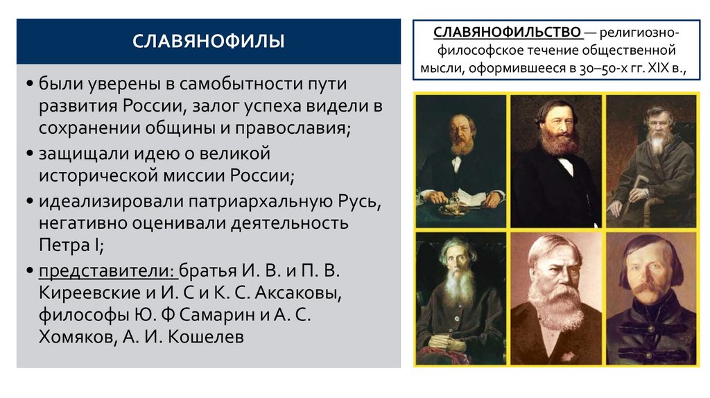 СЛАВЯНОФИЛЫ• были уверены в самобытности пути
