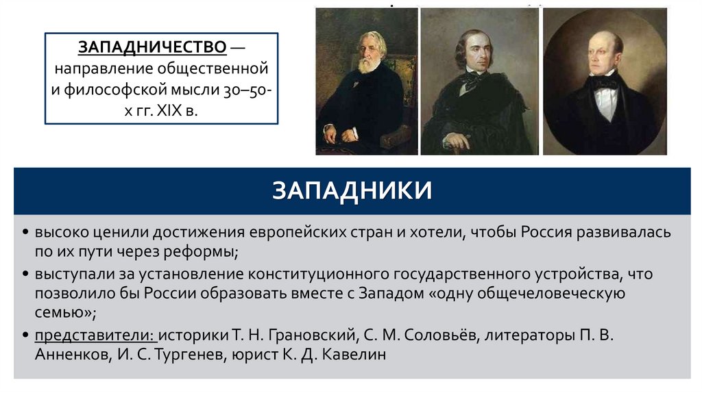 • высоко ценили достижения европейских стран и хотели, чтобы Россия развивалась