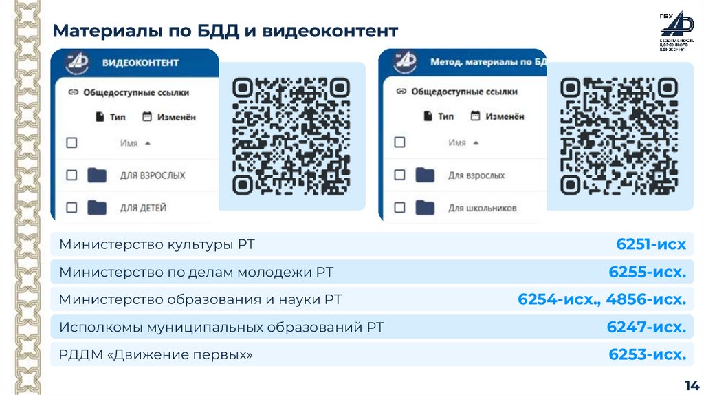 Материалы по БДД и видеоконтентМинистерство культуры РТ