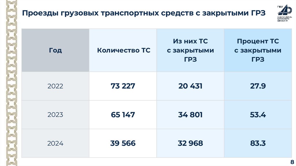 Проезды грузовых транспортных средств с закрытыми ГРЗГод