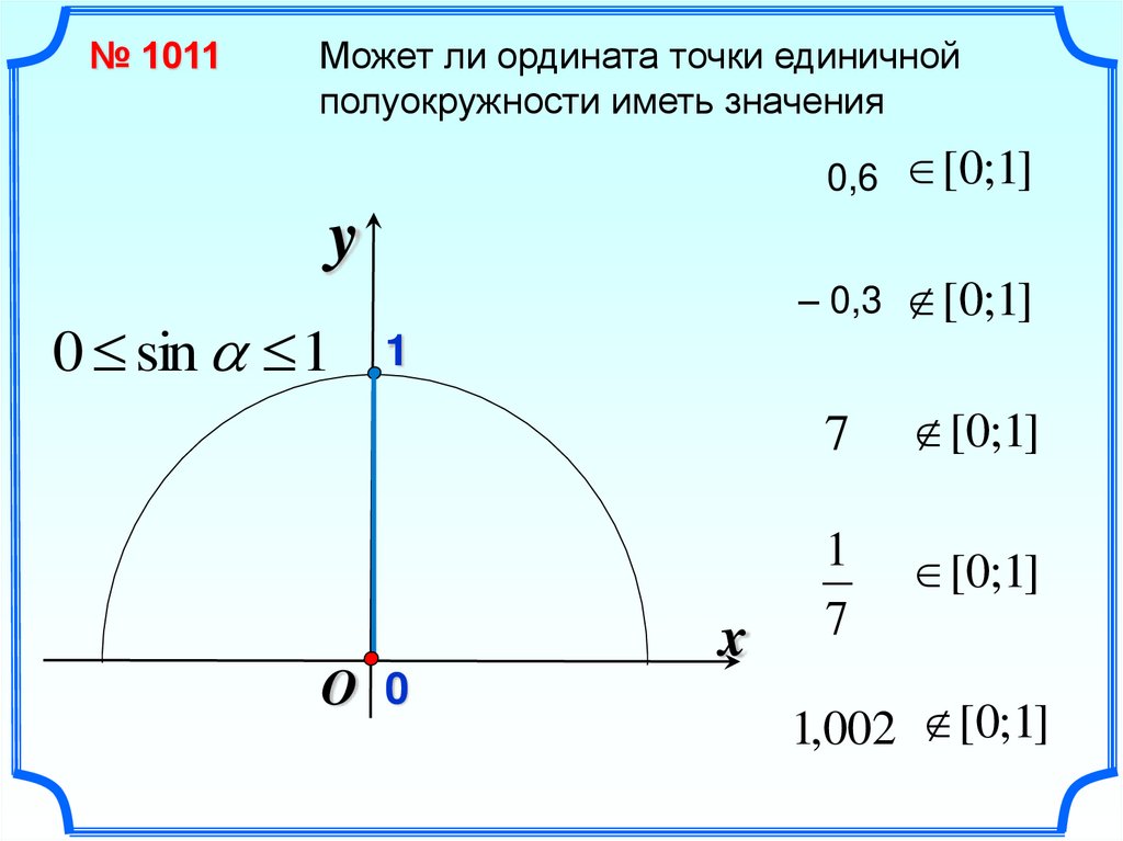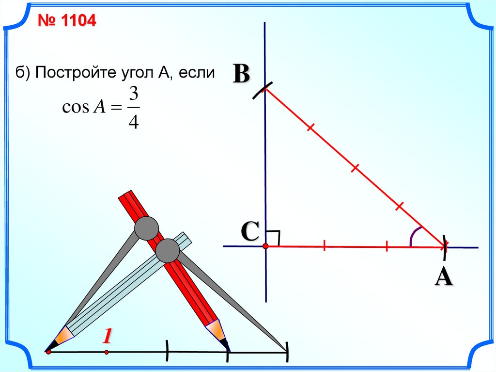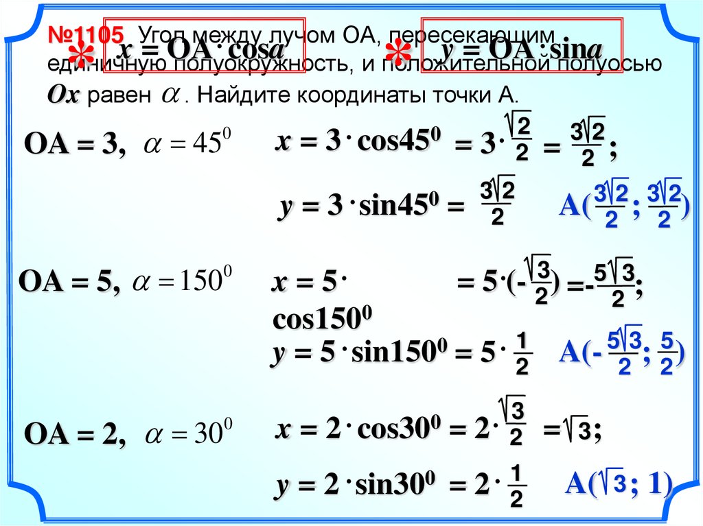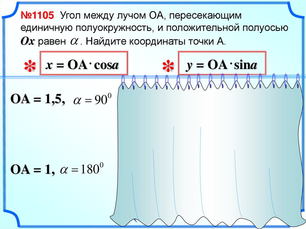 №1105 Угол между лучом ОА, пересекающимединичную полуокружность, и положительной полуосью