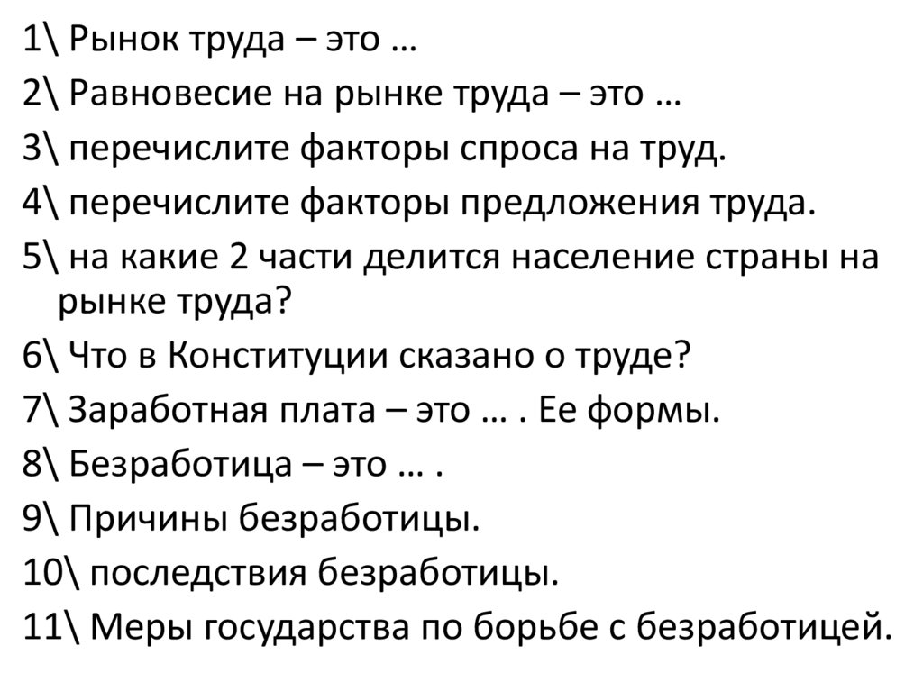 1\ Рынок труда – это …2\ Равновесие на рынке труда – это …