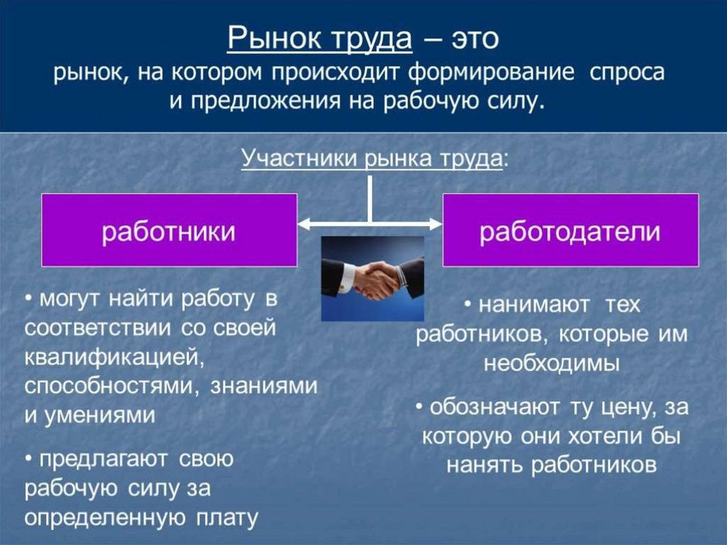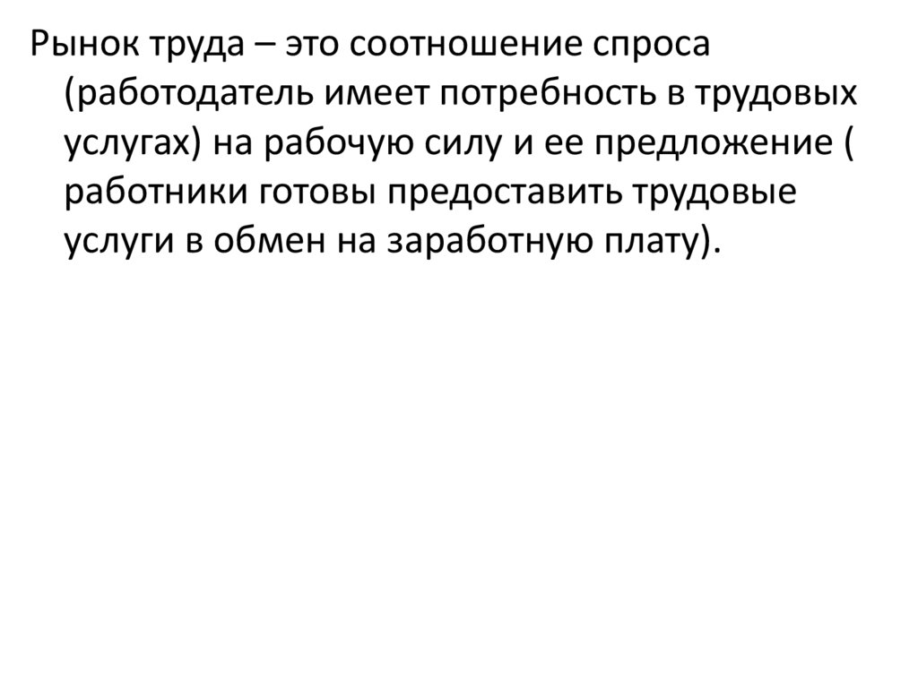 Рынок труда – это соотношение спроса(работодатель имеет потребность в трудовых