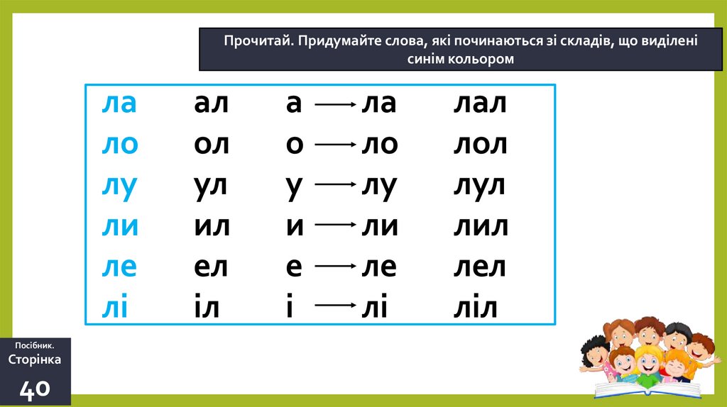 Прочитай. Придумайте слова, які починаються зі складів, що виділені