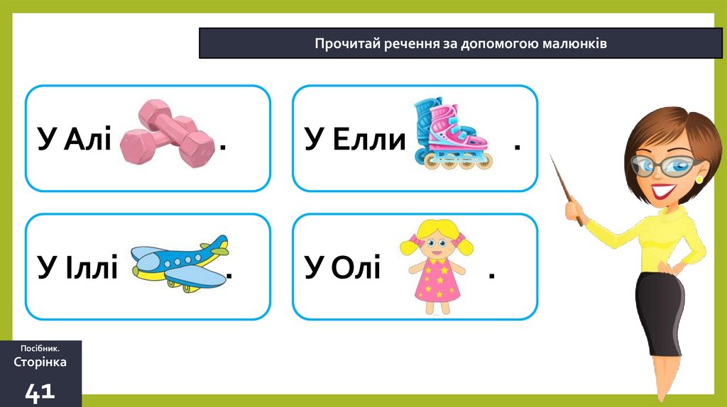Знайди на малюнку предмети, у назві яких є звук [л]. Назви їх. Поставте в