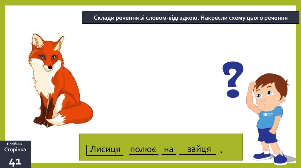 Склади речення зі словом-відгадкою. Накресли схему цього речення