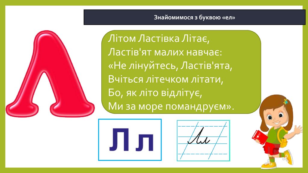 Послухайте вірш. Запам’ятайте слова зі звуками [л], [л´]