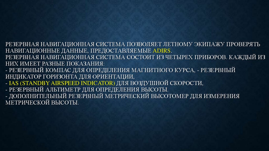 1. Инерциальная система воздушных2. Резервная навигационная система