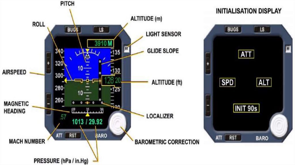 отображает (PFD и ND) и на дополнительном DDRMI (Digital Distance Radio Magnetic Indicator),