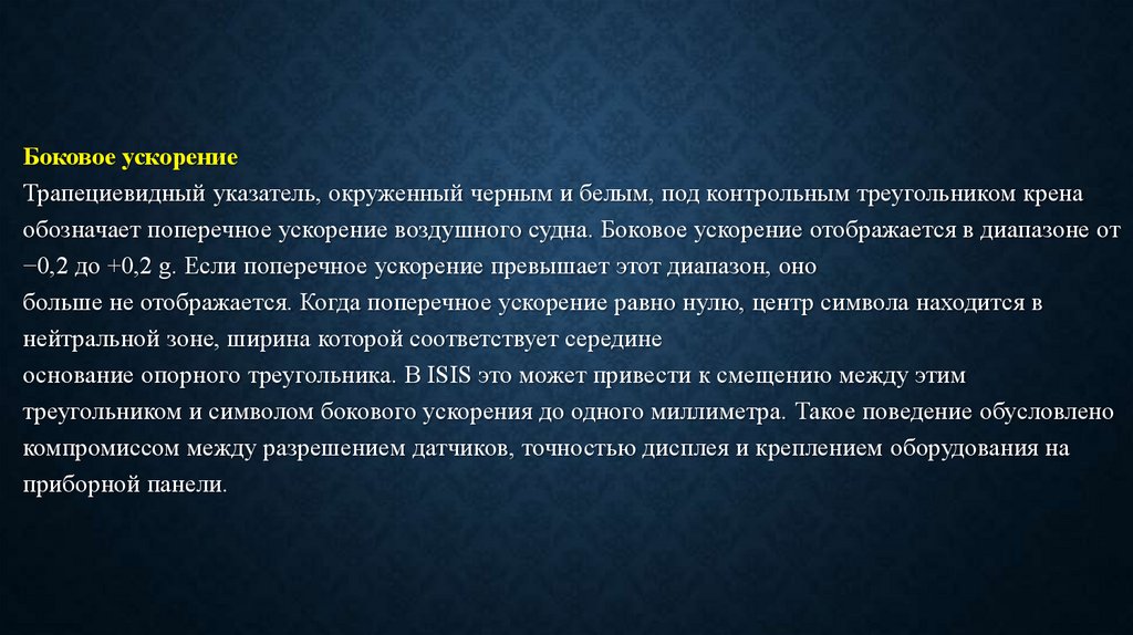 обозначает поперечное ускорение воздушного судна. Боковое ускорение отображается в диапазоне от